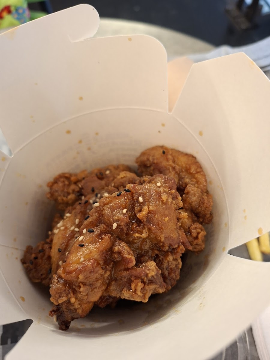 Great place to eat Yangyeom chicken I’ve also tried their veggie bowl, really excellent I was not fan of the sandwich, too oily to my taste. Great staff, next time I’ll try to dine-in.